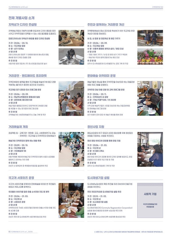 2020년 국고개 소규모 재생사업 “공주 도시재생 허브, 문화예술이 있는 국고개 Art Avenue”은 2019년 국토부의 도시재생 뉴딜사업 중 한 단위사업인 소규모도시재생사업에 공주시도시재생지원센터와 지역 주민협의체가 주도적으로 기획하고 응모하여 선정된 사업으로 2020년 5월부터 2021년 3월까지 시행하는 사업이다.