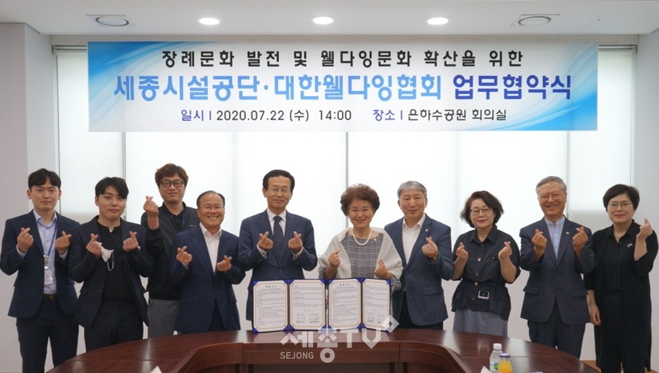 세종특별자치시시설관리공단(이사장 계용준, 이하 공단)은 22일 은하수공원 회의실에서 대한웰다잉협회와 장례문화 발전 및 웰다잉 문화 확산을 위한 업무협약(MOU)을 체결했다고 밝혔다.