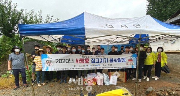 작년에 이어 세 번째를 맞는 이번 봉사활동은 연서면과 연서면 지역사회보장협의체, 세종시자원봉사센터, 세종국민건강검진센터, 세종시 보건소 치매안심센터와 협력하여 주민 주거환경 개선을 위한 현관문 제작, 계단설치, 전기선로 교체 등 대대적인 보수공사를 실시하는 집 고치기 프로젝트이다.