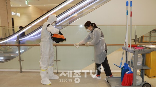 세종충남대병원은 코로나19 감염 우려가 상존하는 만큼 개원 이전부터 환경팀 직원 46명을 투입, 지속적인 방역 대책을 추진하고 있다.