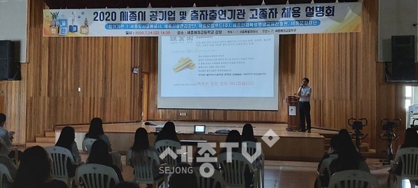 세종특별자치시(시장 이춘희)가 지난 24일 세종여자고등학교 강당에서 진행한 ‘세종시 지방공기업 및 출자출연기관 고졸자 채용설명회’가 특성화고 졸업예정자 50여 명이 참여한 가운데 성황리에 마무리됐다.