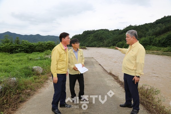 문정우 금산군수는 지난 30일 새벽 내린 집중호우로 피해가 발생한 봉황천, 추풍천, 외부천 등을 방문하고 긴급 점검을 실시했다.
