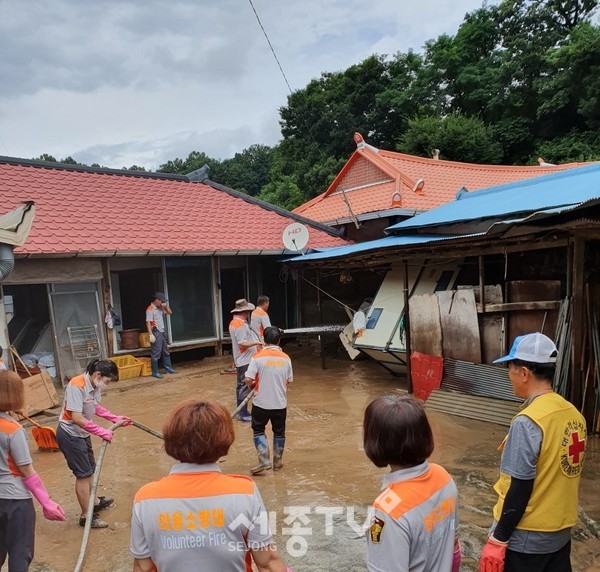 금산군 진산면 의용소방대(대장 최재봉)는 지난 7월 31일 집중호우로 주택침수 피해를 입은 주민의 집을 방문, 침수가구 등을 들어내고 대청소를 실시했다.