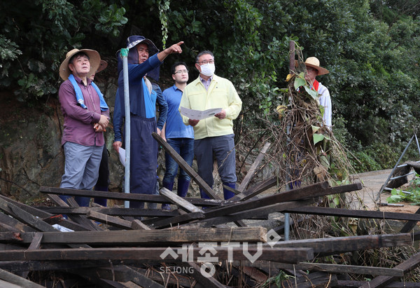 김명선 의장과 사무처 직원 30여명은 이날 침수 피해로 쓰러진 인삼밭 차양막 제거 및 인삼을 수거하는 등 수마가 할퀸 상처 지우기에 총력을 다했다.
