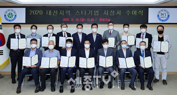 대전시는 14일 오후 3시 시청 중회의실에서 ‘2020 대전시 스타기업’으로 선정된 15개사에 스타기업 지정서와 현판을 수여했다.