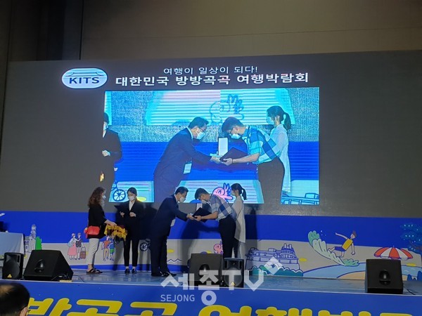 세종특별자치시(시장 이춘희)가 13∼16일 일산 킨텐스에서 열린 제5회 대한민국 방방곡곡 여행박람회에서 호수공원 야경과 언택트 관광지를 효과적으로 선보이며 광역 자치단체 부문 우수상을 수상했다.