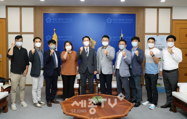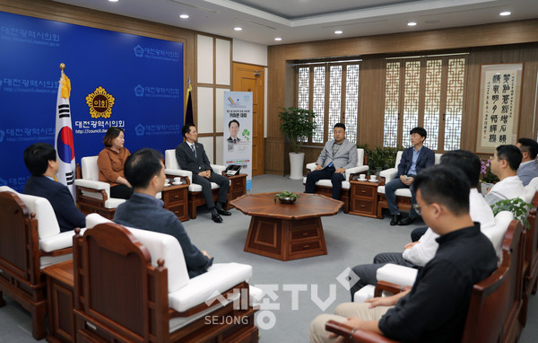 대전광역시의회 권중순 의장은 20일(목) 대전소상공인연합회(회장 안부용) 5개 지회장 및 임원진과 코로나19로 어려움을 겪고 있는 지역상인들의 애로사항을 청취하고 대책을 강구하기 위한 간담회를 개최했다.