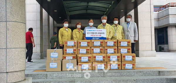논산시자원봉사센터(센터장 김윤진)는 21일 집중호우로 심각한 수해를 입은 천안·아산시의 복구지원에 힘쓰는 봉사자들을 위해 격려물품을 전달했다.
