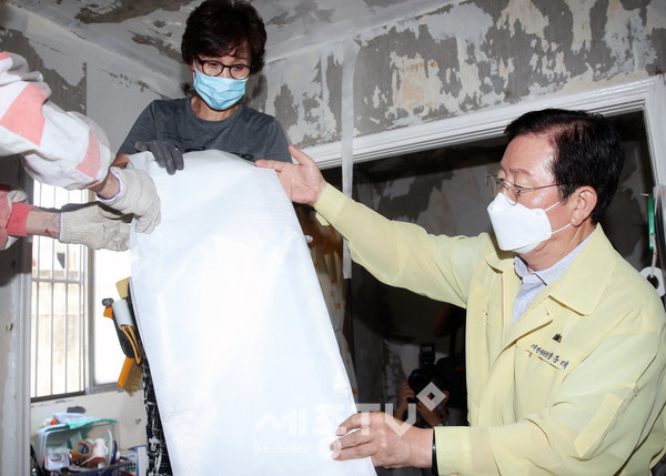 장종태 청장은 “침수 가구의 도배, 장판을 위해 기탁 및 후원해 주신 기관과 단체들에 감사드린다”라며, “이재민들이 하루빨리 집으로 돌아갈 수 있도록 최선을 다하겠다”고 밝혔다.