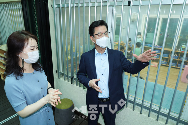 허태정 대전시장은 2일 오전 서구의 어린이집 2곳(국공립1, 민간1)을 찾아 코로나19 장기화로 피로감을 겪고 있는 어린이집 보육교직원들을 격려했다.