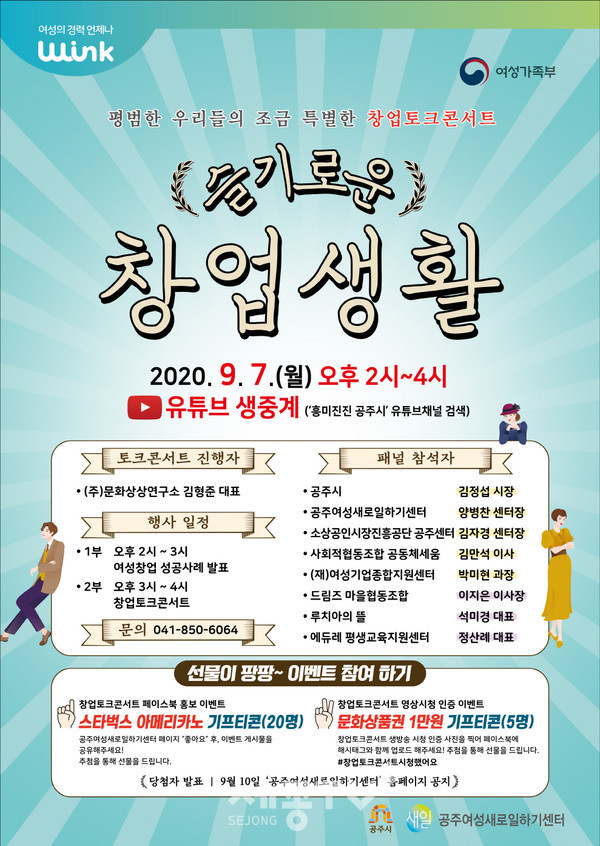 공주여성새로일하기센터(센터장 양병찬)는 여성가족부가 주관하는 2020년 경력단절 예방사업으로 오는 7일 시청 대백제실에서 ‘슬기로운 창업생활’ 토크콘서트를 개최한다.