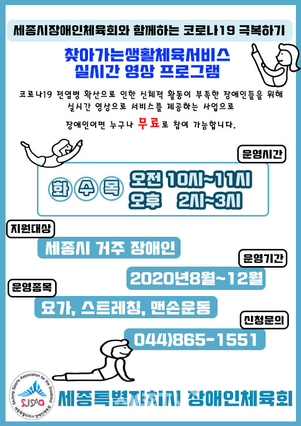 생활체육 실시간 영상프로그램은 지난달 4일부터 세종시장애인체육회(회장 이춘희) 소속 생활체육지도자들이 장애인 20여 명을 대상으로 시범 운영해 왔다.