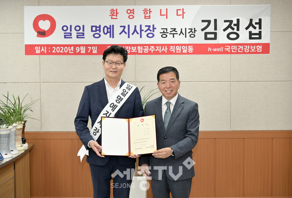 김정섭 공주시장이 지난 7일 국민건강보험공단 공주지사 일일 명예지사장으로 위촉돼 공단 업무를 체험하는 시간을 가졌다.