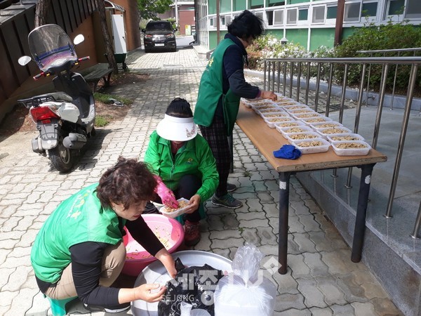 이날 부녀회원들은 새벽부터 계룡면 행정복지센터 앞마당에 모여 재료를 준비하고 어묵볶음과 콩나물무침 등 반찬 3종을 만들어 독거노인과 조손가정 등 생활이 어려운 가정 31가구에 반찬을 직접 전달했다.