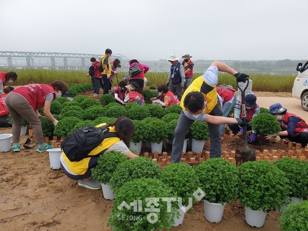 세종특별자치시 3생활권(소담·보람·대평동) 직능사회단체가 14∼15일 금강 친수공간에서 꽃심기 자원봉사를 실시했다.