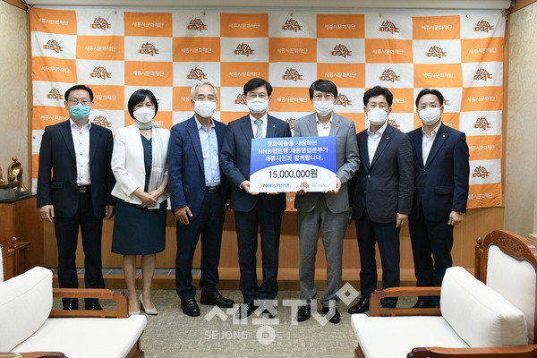 NH농협은행 세종영업본부(본부장 이범구)가 17일 세종시청 접견실에서 세종시문화재단(대표이사 김종률)에 문화예술후원금 1천 5백만 원을 전달했다.