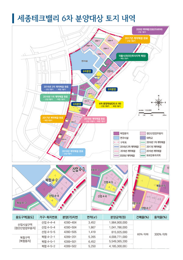 세종특별자치시(시장 이춘희)와 한국토지주택공사 세종특별본부(본부장 임동희)가 4-2생활권 세종테크밸리(도시첨단산업단지) 잔여 토지 6개 필지를 대상으로 입주자 모집 및 분양을 실시한다.