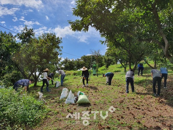 세종특별자치시 아름동(동장 여상수)이 18일 장군면 송문리에서 ‘공직자 농촌일손돕기’를 진행했다.