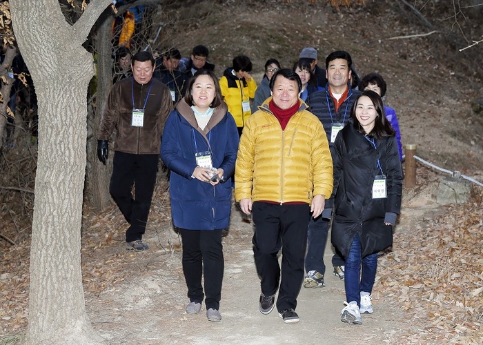 이날 시민 200여명과 함께 오전 7시30분 출발한 아침산책은 싸이클경기장 진입로~양궁장~사이클장입구~도솔산~대전외고에 이르는 월평동 싸이클경기장 산책로에서 이뤄졌다.