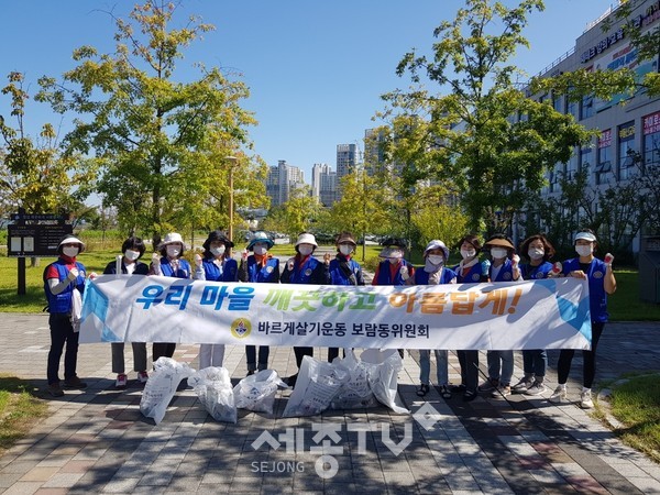 세종특별자치시 바르게살기운동 보람동위원회(위원장 류도경)가 25일 근린공원 및 금강수변공원 일대에서 추석 명절맞이 ‘보람동 환경정화 활동’을 전개했다.