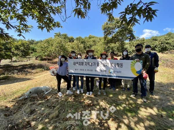세종특별자치시시설관리공단(이사장 계용준, 이하 공단)은 지난 25일 세종시 관내 태풍피해 농가를 위한 일손 돕기에 나섰다고 밝혔다.