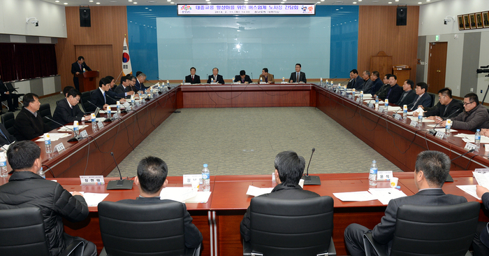 도는 11일 도청 대회의실에서 안희정 지사와 이준일 충남버스운송사업조합 이사장, 박종익 한국노총 자동차노조 충남지부장 등 시내·시외버스업계 대표 및 노동조합장 등 37명이 참석한 가운데 노·사·정 간담회를 개최했다.
