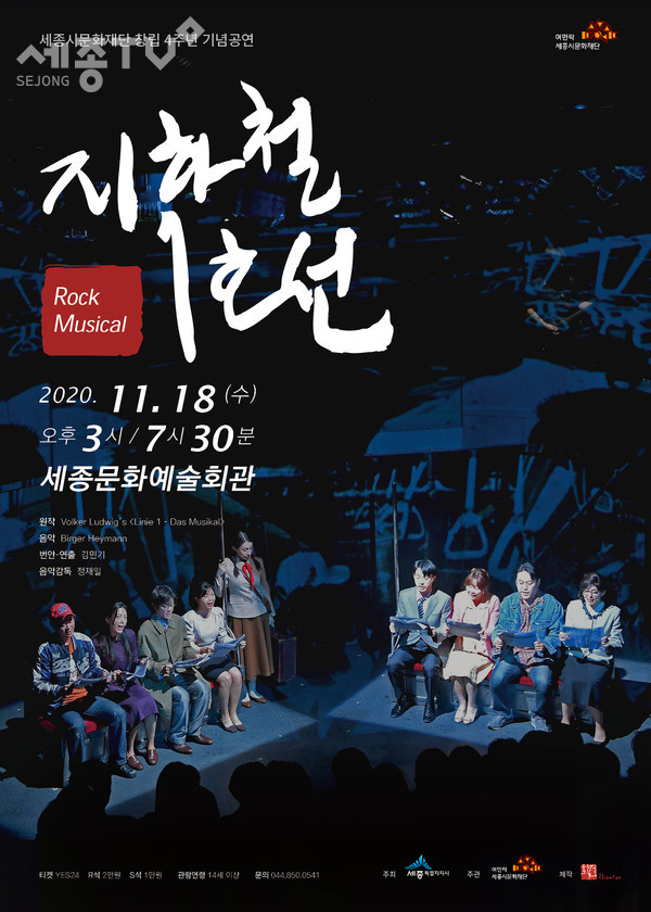 세종시문화재단(대표이사 김종률)은 창립 4주년을 맞아 다음 달 18일(수) 세종문화예술회관에서 록뮤지컬 <지하철 1호선>을 선보인다.