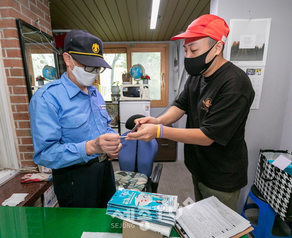 마스크와 방역물품세트는 코로나19에도 불구하고 대면 활동이 많은 아파트 경비원들의 건강을 지키기 위해 서울노동권익센터와 노동복지센터에서 마련하였다.