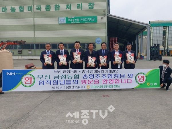 부산지역에 위치한 금정농협 송영조 조합장은 홍성 금마농협을 방문하여 코로나19로 인한 경제둔화와 국민들의 경제활동 위축으로 어려운 경영여건 속에서 두 농협간 자매결연을 통해 도농상생기금으로 출하선급금 5억원을 무이자로 지원하는 등 금마농협과 농민조합원의 발전을 위해 앞장섰다.