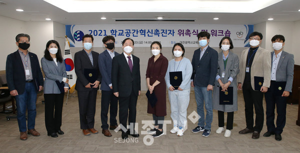 대전광역시교육청(교육감 설동호)은 23일 시교육청에서 2021년 학교공간혁신사업의 교량 역할을 담당할 학교공간혁신촉진자(퍼실리테이터) 13명에 대해 위촉장을 수여했다.