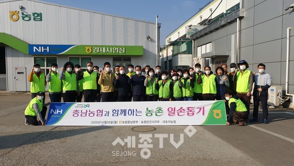 농협중앙회 충남지역본부(본부장 길정섭)는 26일 당진시 대호지면에서 고구마 농사를 짓는 최재욱씨 농가를 방문해 고구마 수확 농촌봉사 활동을 펼쳤다.