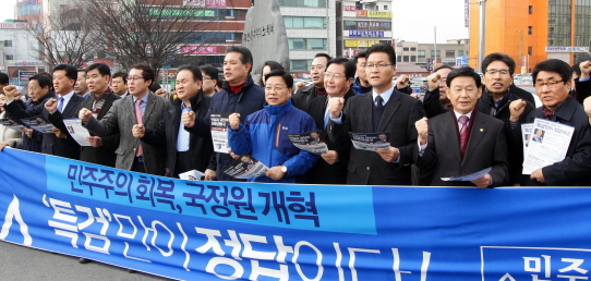 민주당이 16일 충청권에서 김용판 전 서울경찰청장의 무죄 판결을 규탄하는 장외집회를 곳곳에서 가졌다.