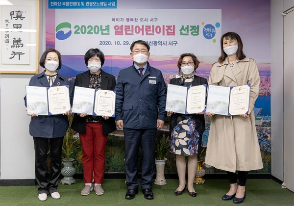 부산 서구(구청장 공한수)는 부모가 안심하고 자녀를 맡길 수 있는 보육환경 조성을 위해 4개 어린이집을 `열린어린이집'으로 선정해 지난 29일 오후 4시 구청장실에서 지정서를 전달하고 구청장상을 수여했다.