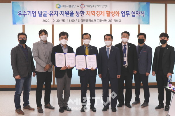 세종특별자치시시설관리공단(이사장 계용준, 이하 공단)은 30일 세종테크밸리 내 지식산업센터인 산학연클러스터지원센터에서 세종창조경제혁신센터(센터장 박철순)와 지역경제 활성화를 위한 업무협약을 체결했다고 밝혔다.