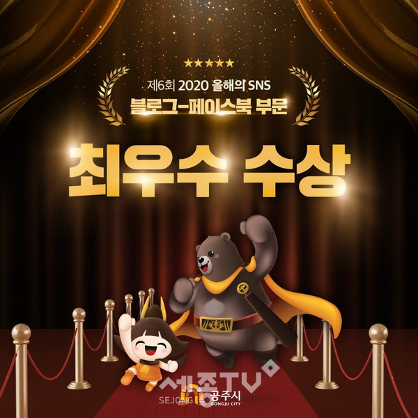 공주시(시장 김정섭)가 (사)한국콘텐츠진흥협회에서 주최한 ‘제6회 2020 올해 SNS대상’에서 지난해에 이어 2년 연속 페이스북과 블로그 부문 최우수상을 수상했다.