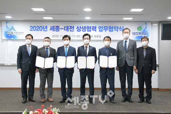 시는 3일 시청 세종실에서 이 같은 내용을 담은 ‘2020년 세종-대전 상생협력 업무협약’을 체결하고, 평면적 협업관계를 넘어 전략적·입체적 동반자 관계를 구축해 상생발전에 나서기로 했다고 밝혔다.