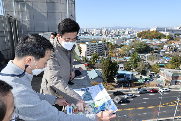 허태정 대전시장은 4일 오전 11시 대전역주변 철도 관사촌과 삼성4구역 재개발 사업을 추진하는 낙후된 주택가 사업현장을 직접 방문해 현장을 꼼꼼히 둘러보고 주민들을 만났다.