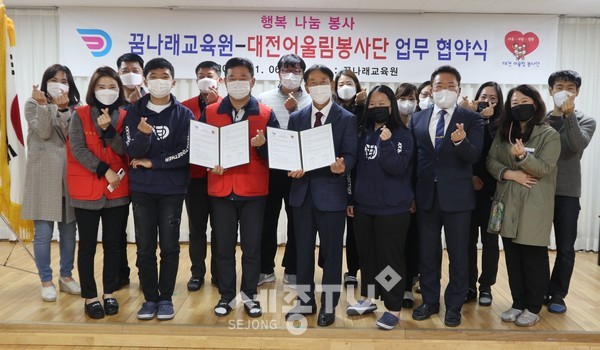 대전교육연수원(원장 이광우) 부설 꿈나래교육원에서는 11월 6일(금) 교직원 및 봉사단 관계자 14명이 참석한 가운데 ‘대전어울림봉사단’과 업무협약을 체결했다.