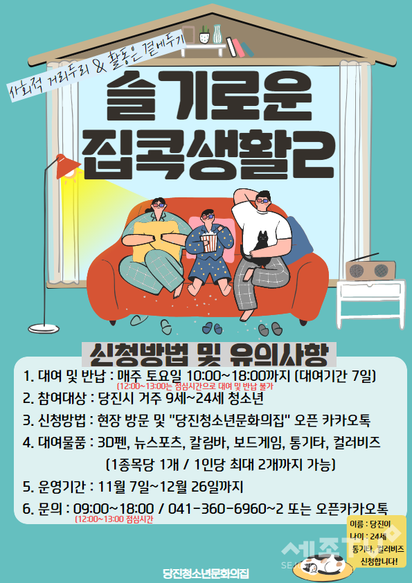당진시가 지난 4월부터 6월까지 진행했던 슬기로운 집콕생활이 많은 청소년 및 시민들의 재요구로 슬기로운 집콕생활2로 다시 돌아왔다.