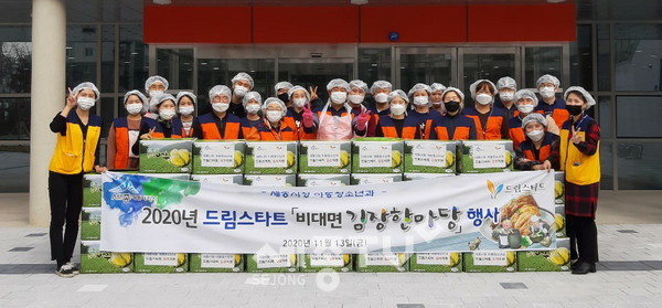 세종특별자치시(시장 이춘희) 드림스타트가 13일 남세종종합청소년센터에서 ‘비대면 드림 김장 한마당’을 열고 사례관리 아동들을 김장김치 나눔활동에 나섰다.
