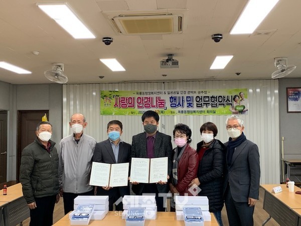 공주시 옥룡동(동장 이창원)은 지난 12일 옥룡동행정복지센터에서 일공공일 안경·콘택트 공주점(대표 정진우)과 ‘사랑의 안경 나눔’ 협약을 체결했다.
