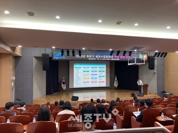 세종특별자치시(시장 이춘희)가 18일 시청 여민실에서 세외수입 업무 담당 공무원 80명을 대상으로 ‘2020년 하반기 세외수입 업무담당자 역량강화 교육’을 실시했다.