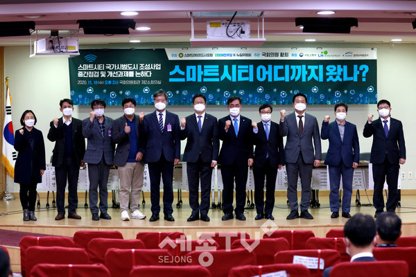 세종·부산 스마트시티 국가시범도시 조성사업의 중간점검을 통해 사업 진행 과정에서 드러난 문제점과 개선과제를 검토하고 사업의 방향성을 논의하기 위해 마련된 이번 토론회에는 진선미 국회 국토교통위원장, K-뉴딜위원회 디지털뉴딜분과 강병원 위원장, 맹성규 의원, 홍성국 의원 등이 참석했다.
