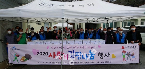 세종특별자치시 전동면 지역사회보장협의체(민간위원장 한석수)와 새마을협의회(회장 강선영)가 지난 18일부터 19일까지 이틀간 전동면사무소에서 사랑의 김장김치 나눔행사를 펼쳤다.