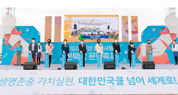 농림축산식품부 공모 사업으로 지난 11월 14일부터 15일까지 추진한 ‘2020 부산 동물사랑온택트 문화축제’에서 부산 북구 정명희 구청장과 부산광역시 변성완 권한대행이 참여한 가운데 성공리에 마무리가 되었다.