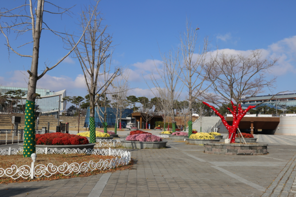 세종호수공원 중앙광장에 식재된 조경수가 형형색색의 옷을 입고 겨울을 맞이한다.