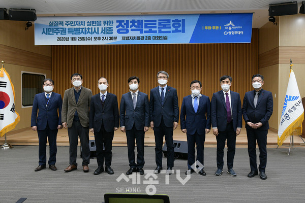 세종특별자치시(시장 이춘희)가 충청투데이(사장 성기선)와 공동으로 25일 지방자치회관에서 ‘시민주권 특별자치시 세종과 주민자치의 방향’을 주제로 정책 토론회를 개최했다.