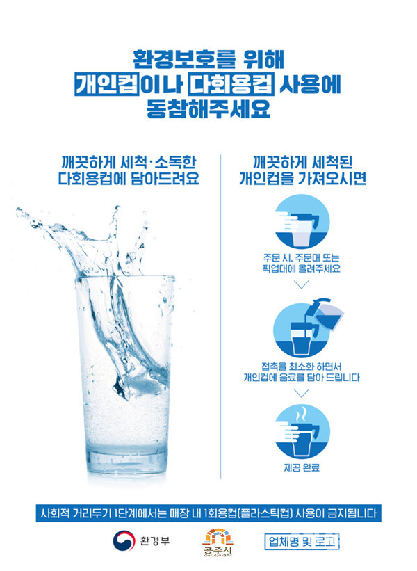 주병학 자원순환과장은 “코로나19로 인한 무조건적인 1회용품 사용 분위기 조성 및 생활쓰레기 발생량 급증 등에 따른 조치로 위생을 철저히 하면서도 1회용품 사용을 줄일 수 있도록 개인컵 및 다회용컵 사용이 활성화되길 바란다”고 말했다.