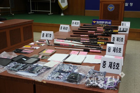 충남지방경찰청(청장 정용선) 광역수사대는 24일 오전 10시 30분 지방청에서 브리핑을 갖고 폭력행위등 처벌에 관한 법률상 폭력조직 구성·활동, 공갈, 폭행 등의 혐의로 두목 심모(46)씨 등 15명을 구속하고 조직원 김모(40)씨 등 36명을 불구속 입건, 달아난 조직원 박모(32)씨 등 9명을 쫓고 있다고 밝혔다.