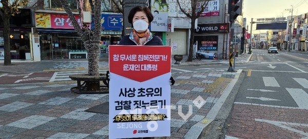 국민의힘 상주시‧문경시 당원협의회(임이자 당협위원장)는 30일, 추미애 법무부 장관의 ‘검찰총장 직무배제’사태에 국정조사를 요구하는 1인 시위에 나섰다.